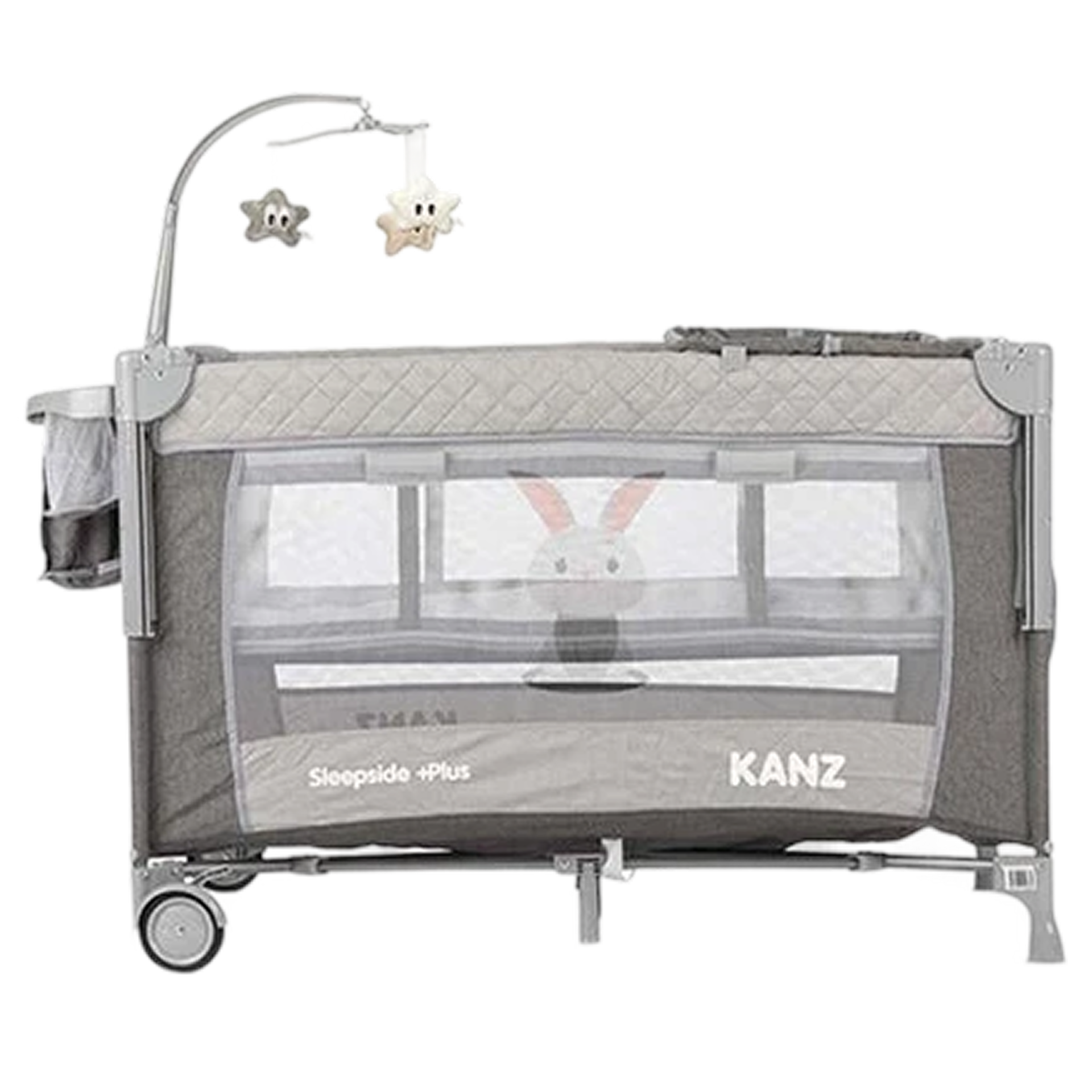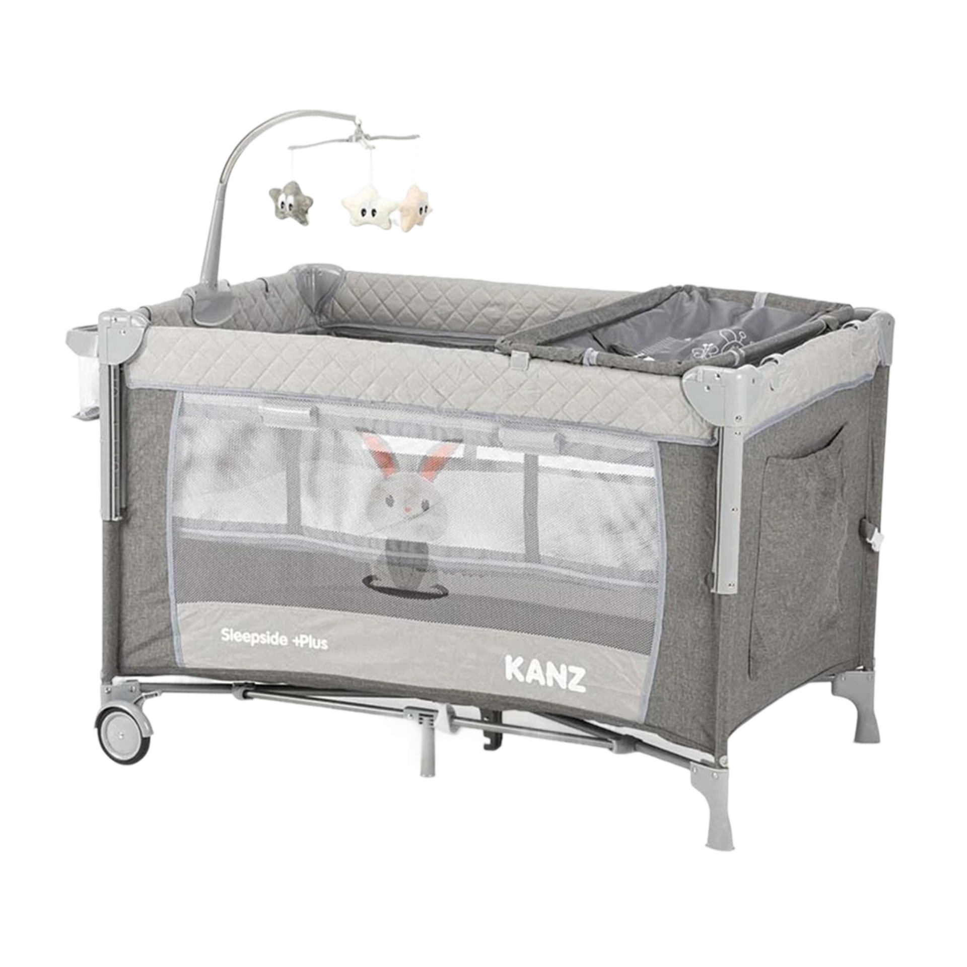 Fren sistemine sahip tekerlekleri, park yatağı evin farklı odalarına zahmetsizce taşımanıza ve istediğiniz yerde güvenle sabitlemenize yardımcı olur.