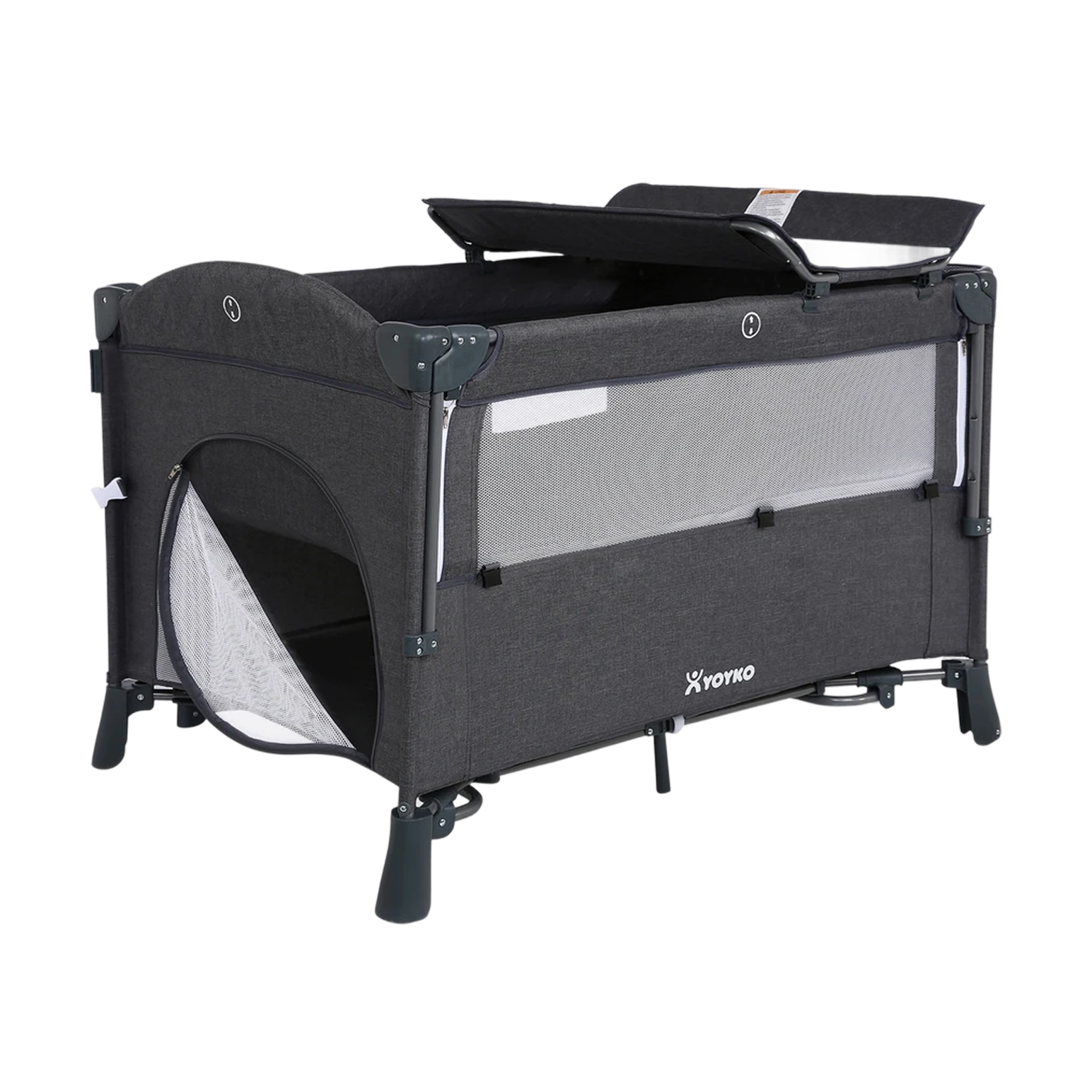 Yan taraftaki fermuarlı oyun kapısı, çocuğunuz büyüdüğünde parkın içine kendi başına girip çıkmasına olanak tanır.