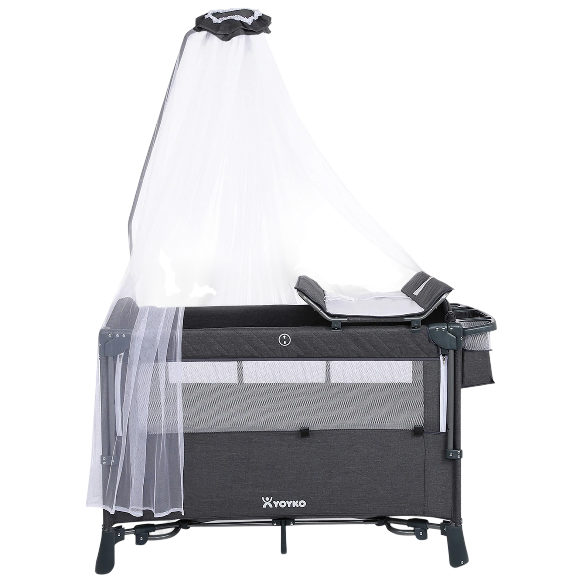 İki kata sahip yapısı, doğumdan itibaren ilk aylar için ara katı yatak, daha sonrası için ise oyun parkı olarak kullanım imkanı sunar.